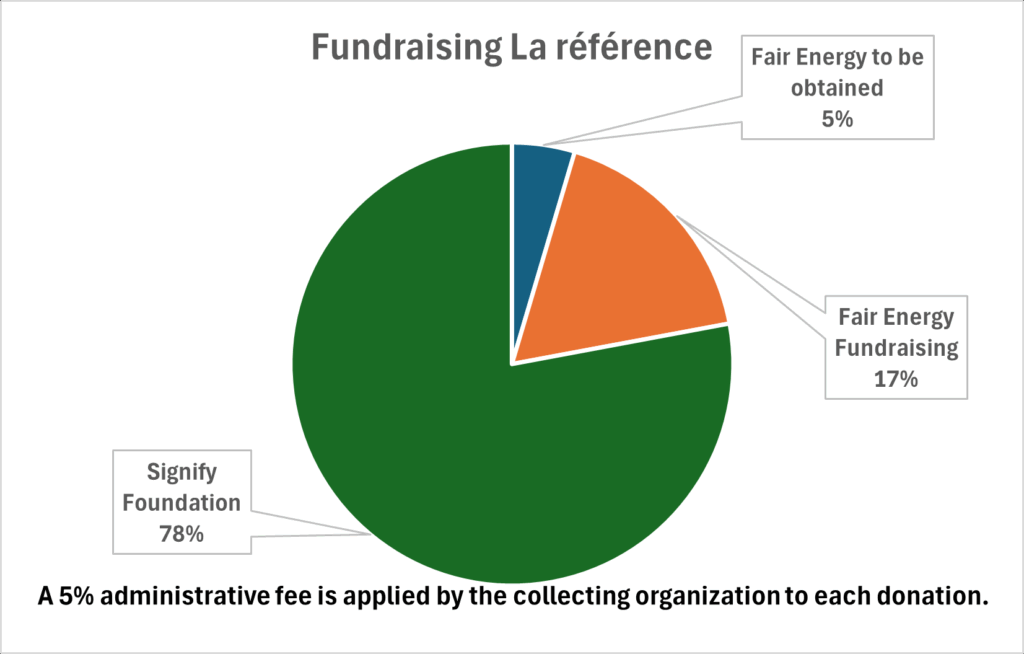 Le budget total du projet s’élève à 3 433,18 €. La Fondation Signify couvre 78 % de ce montant, soit 2 675,62 €, en nature, en fournissant 80 lampes LED et 10 projecteurs solaires pour l’éclairage intérieur et extérieur de l’école. Il reste donc 22 %, soit 757,56 €, dont 17 % ont déjà été collectés (600 €), ce qui laisse 157,5 € à collecter.
