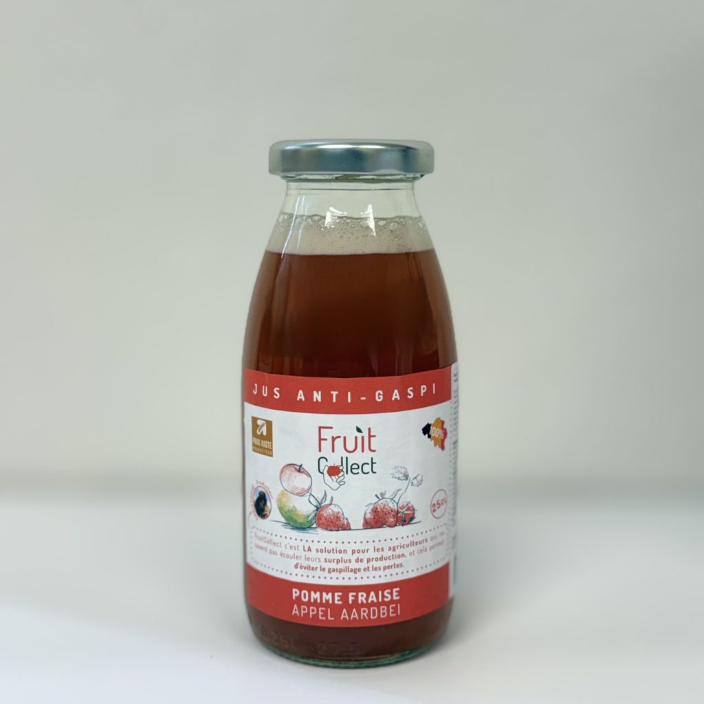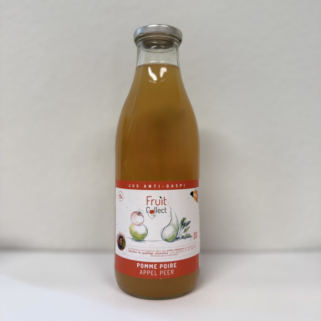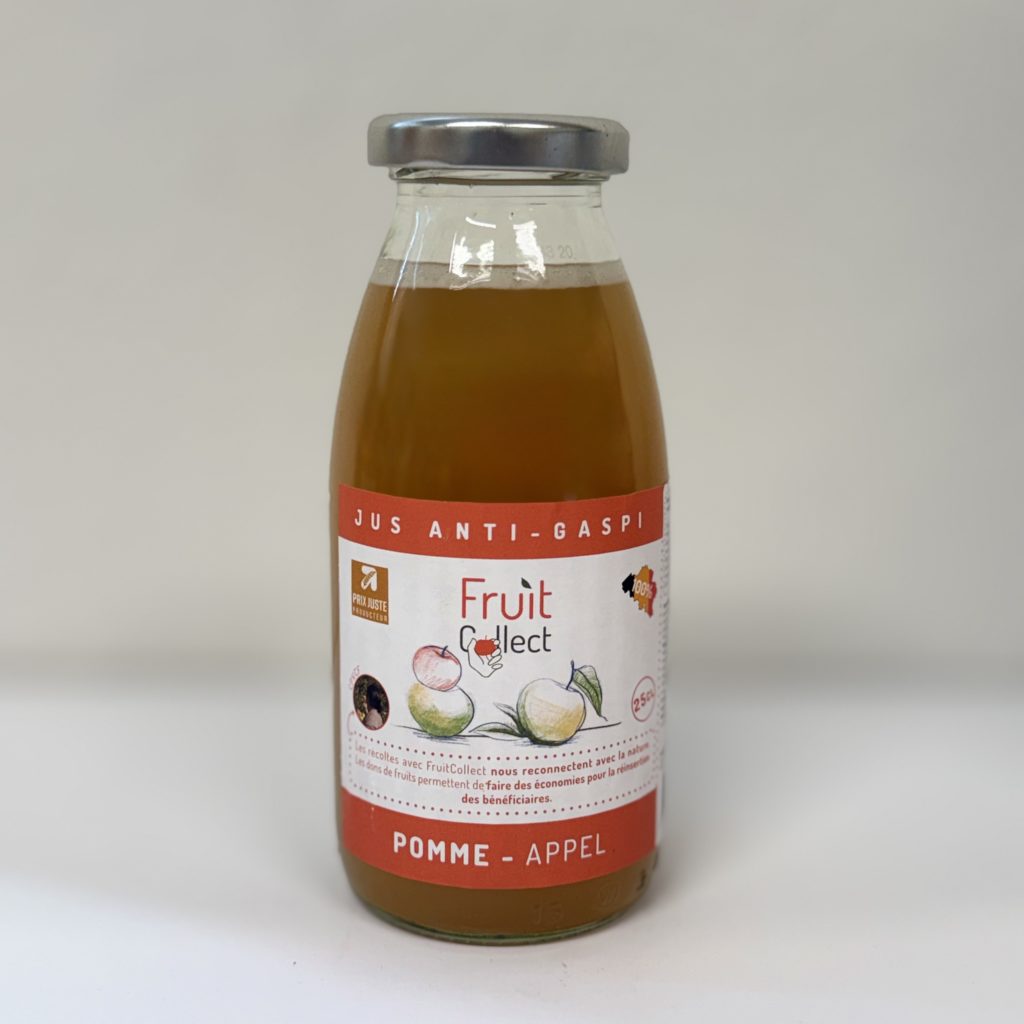 Issu de fruits récoltés dans une démarche anti-gaspi en Belgique et pressé dans le Hainaut, ce jus s’inscrit dans une économie circulaire et soutient des actions sociales et solidaires.